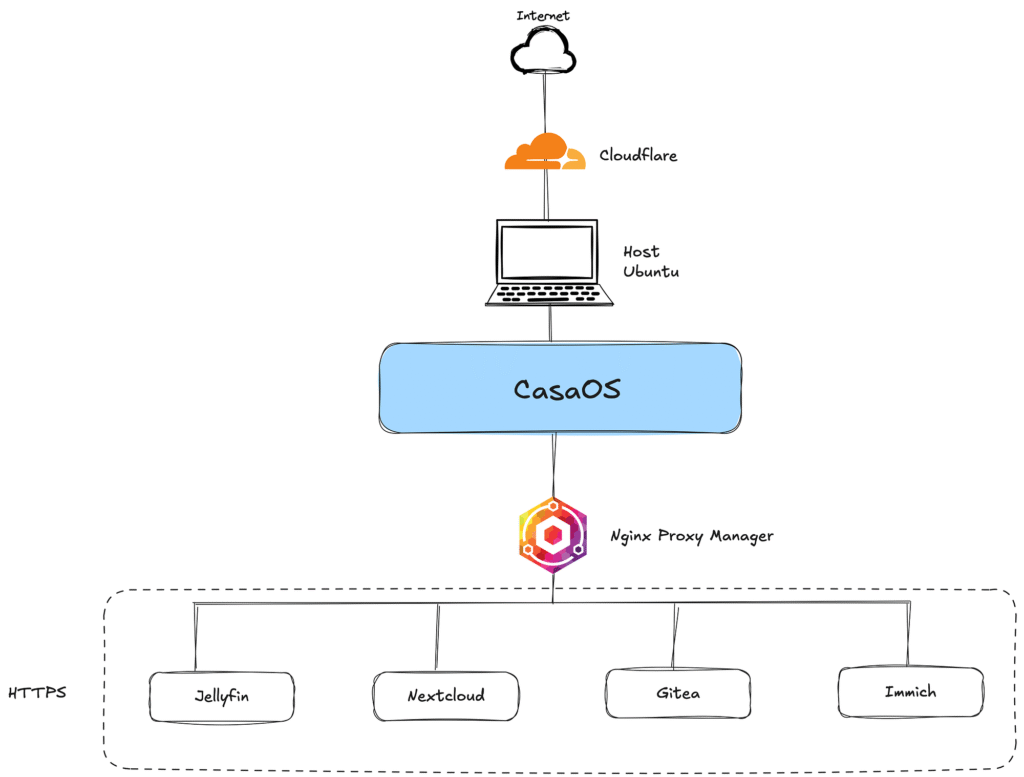 Con este método, cualquier aplicación instalada en CasaOS puede ser expuesta al exterior de forma segura y organizada. La combinación de CasaOS + NPM + Cloudflare ofrece un flujo limpio, con certificados SSL automáticos y gestión centralizada de accesos. Es una solución replicable y escalable: desde aplicaciones multimedia como Jellyfin hasta gestores de archivos como Filebrowser.