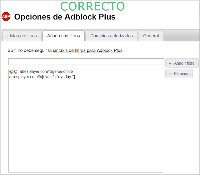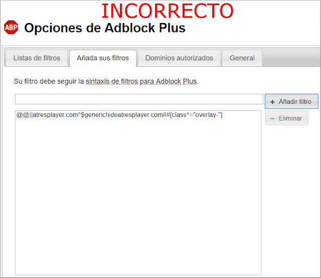 Para quitar esto y seguir viendo vídeos sin publicidad molesta tenemos que añadir a nuestro AdBlock el siguiente filtro: